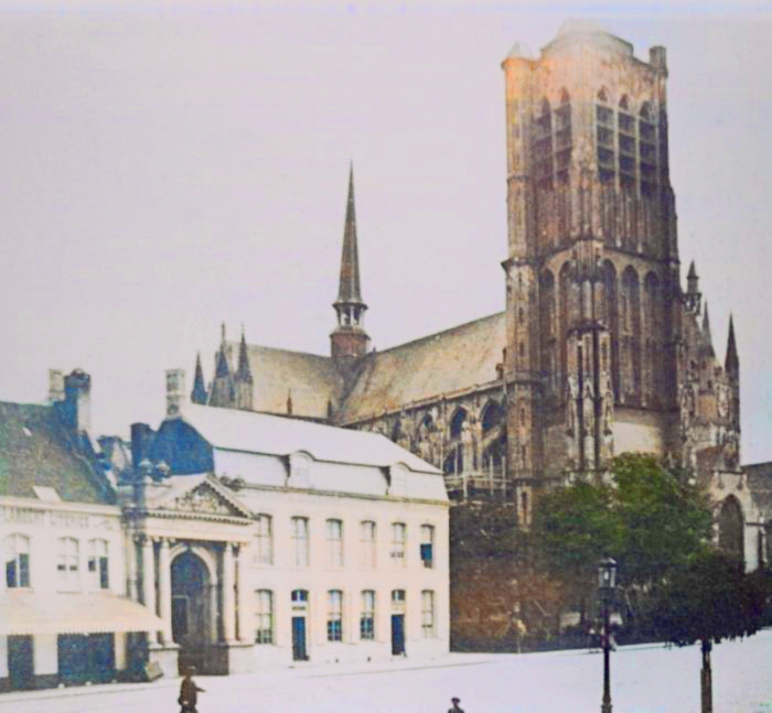 Woensdag 25 augustus 1858. Om 8u45 was een onverwachte bliksem ingeslagen in de top van de kleine toren in het midden van de Sint-Maartenskerk. De wachter had de bliksem zien vallen, maar twijfelde nog of die vuur had veroorzaakt en was daarvoor nazicht gaan doen. Toch zag men korte tijd later aan de zuidkant wat rook komen uit de top, juist onder het kruis, rook die allengskens begon aan te groeien. De overheden kwamen al snel ter plaatse. Onder het bevel van schepen Vandenpeereboom – kapitein van de pompiers – hadden ze alle mogelijke middelen ingespannen om het verslindende vuur te kunnen blussen en onze schone kathedraal te vrijwaren. Bij het torentje, scherp en steil zijnde, was het onmogelijk langs buiten tot aan de top te geraken, daar waar het vuur was.