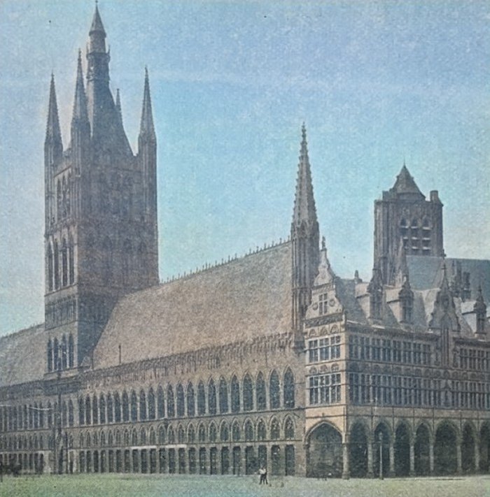 Donderdag 7 januari 1909. Men was in Ieper bezig aan de herstelling van de lakenhalle. Dit werk was aangenomen door mijnheer Lelong van Kortrijk die het doorgegeven had aan schaliedekkersbaas Arthur Verbeeck van Ieper. Die was vanochtend aan het werk met zijn twee zonen en vijf andere werklieden. Aan de nok van het dak, langs de kant van de binnenkoer was een stelling vastgemaakt met nieuwe haken.